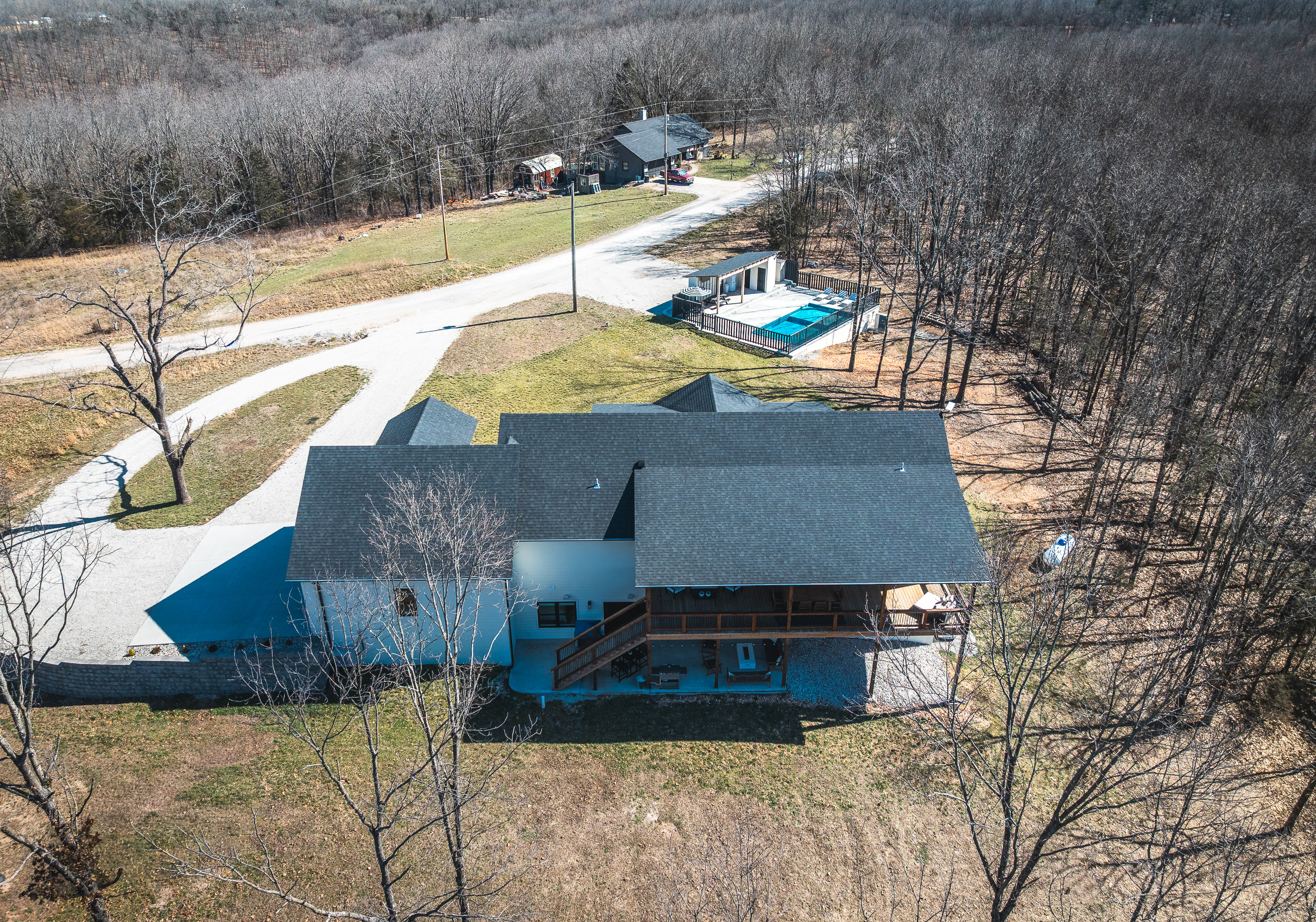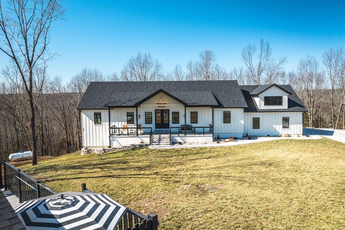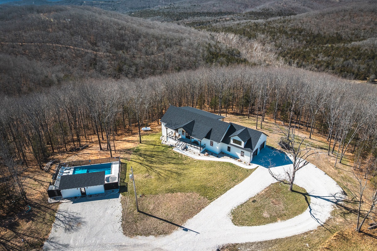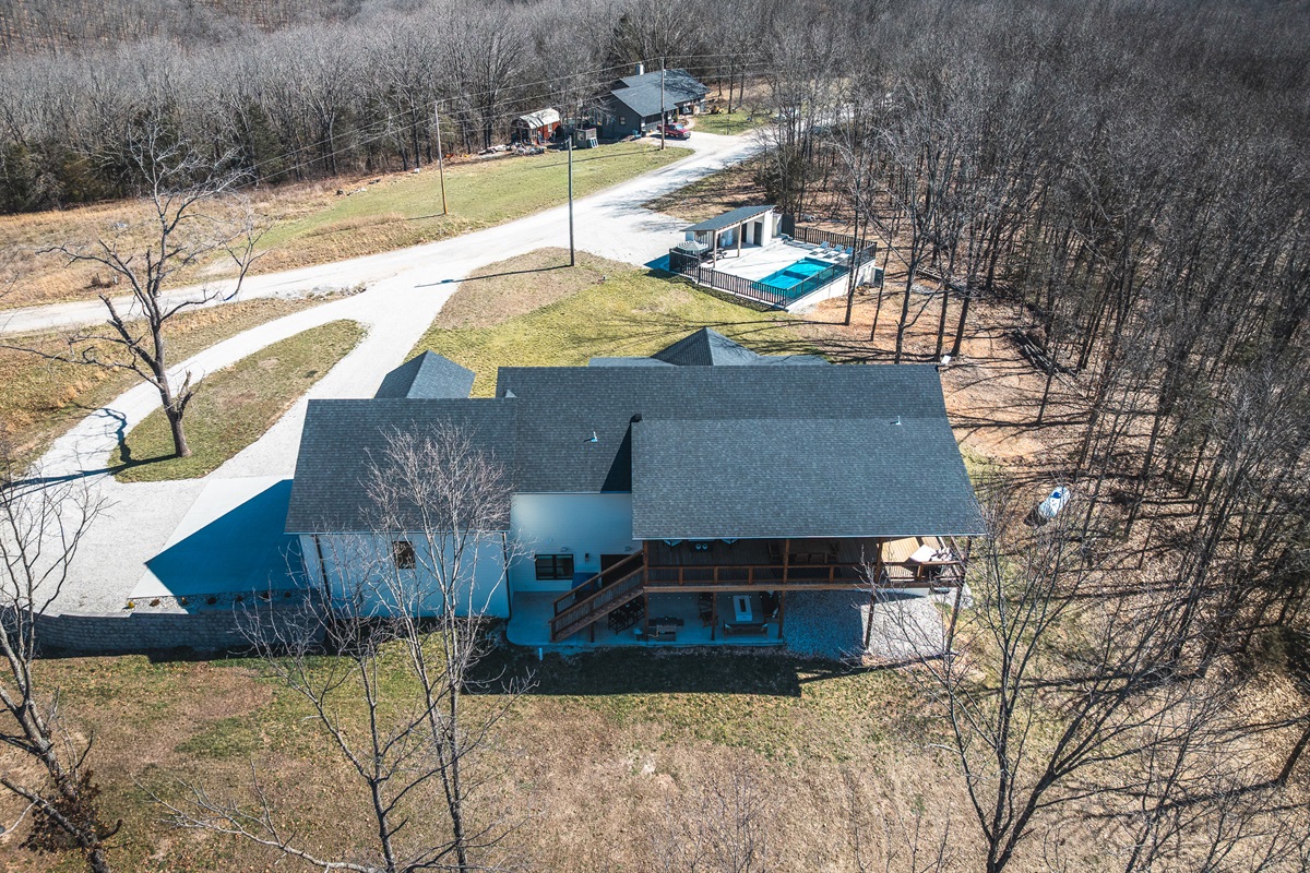 Welcome to your ultimate Ozark escape! A brand-new, luxury 7-bedroom retreat designed for unforgettable gatherings with family and friends. Tucked down a quiet rural road, on 30+ acres, yet just minutes from Branson West, this spacious home comfortably sleeps 14 and offers resort-style amenities inside and out.