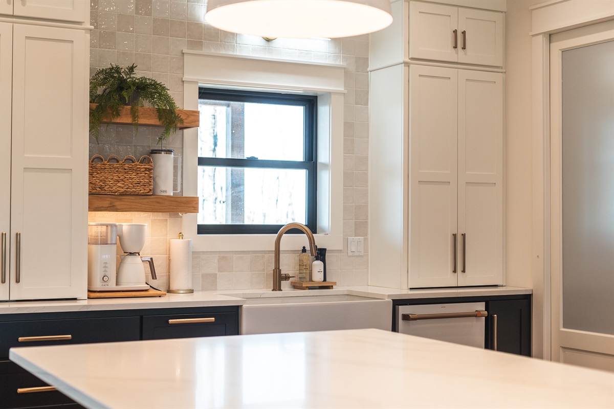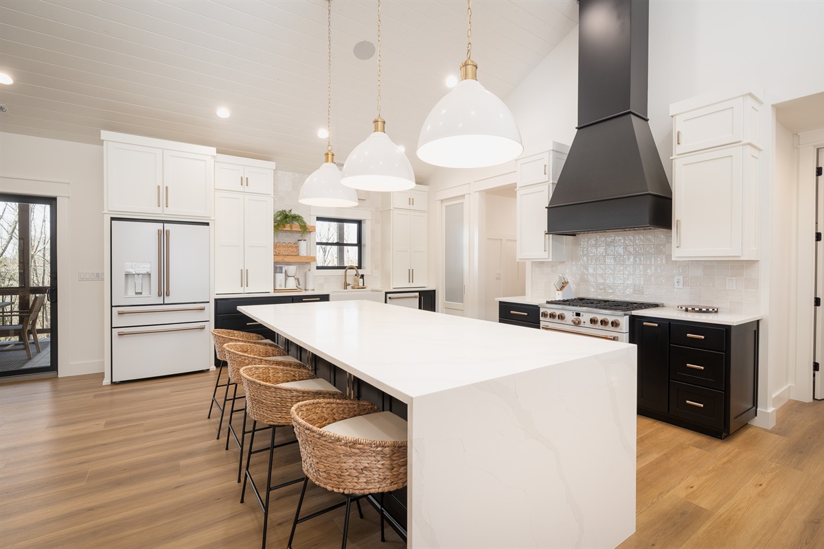 The high-end kitchen is fully stocked with: