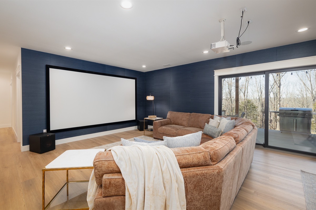 🎞️Large projector screen TV and sound system—perfect for movie nights or watching the big game