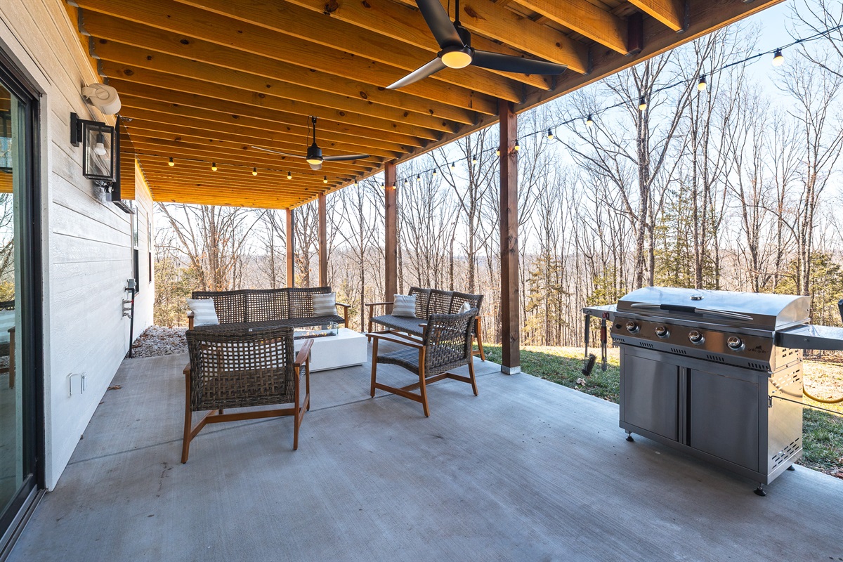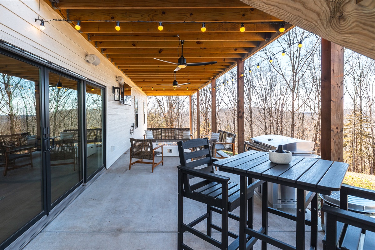 Grill and high-top table with chairs