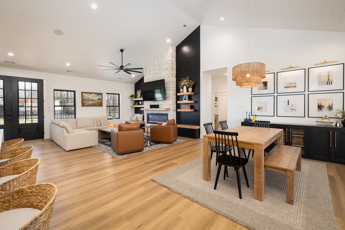 Open-concept kitchen, dining, and living room, ideal for quality family time.
