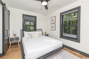 Inside, you'll find a cozy king bedroom and a comfortable queen bedroom, ensuring a peaceful night's rest. Unwind in the tranquil ambiance with the melody of birdsong and amenities such as a fire pit, surround sound TV, family games, and a record player for entertainment.
